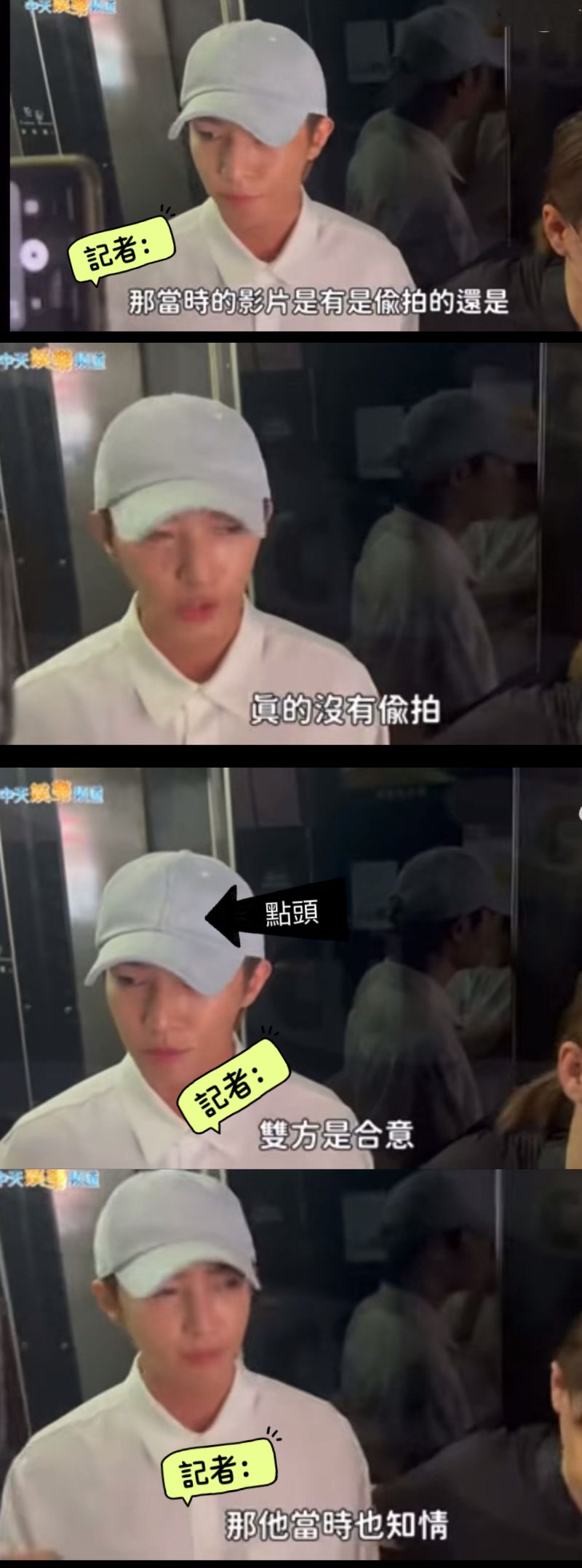 對於影片是否是偷拍的,炎亞綸表示:「真的沒有偷拍。」對於記者提問是不是“雙方合意”、“那他當時也知情”,炎亞綸點頭回應。