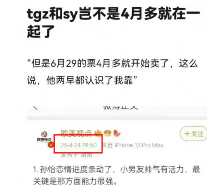 由於周杰倫演唱會在4月就開始賣票,因此網友推測兩人4月多就在一起了,甚至早在4月底,就有瓜主爆料表示孫怡找了個“小男友”👇