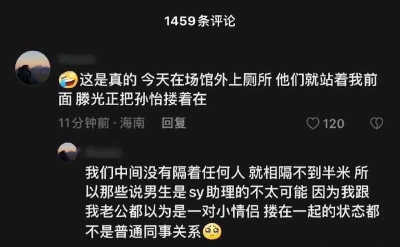 還有網友發文表示,自己就在現場,藤光正把孫怡摟在懷裡👇