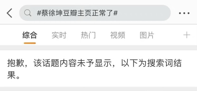 雖然但是,蔡徐坤的豆瓣主頁在2號這天恢復正常,所有作品和名字正常顯示,不過詭異的是,這個有關蔡徐坤豆瓣恢復正常的正面熱搜,卻突然被撤除!
