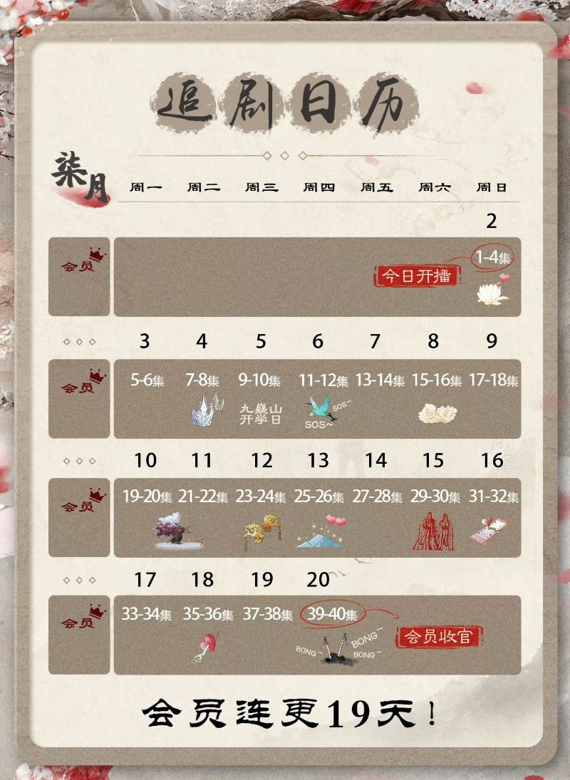 而追劇日曆一併公開,40集連更19天,一天也沒有斷更,這波操作實力寵粉,不需要受斷更的苦啦!!!