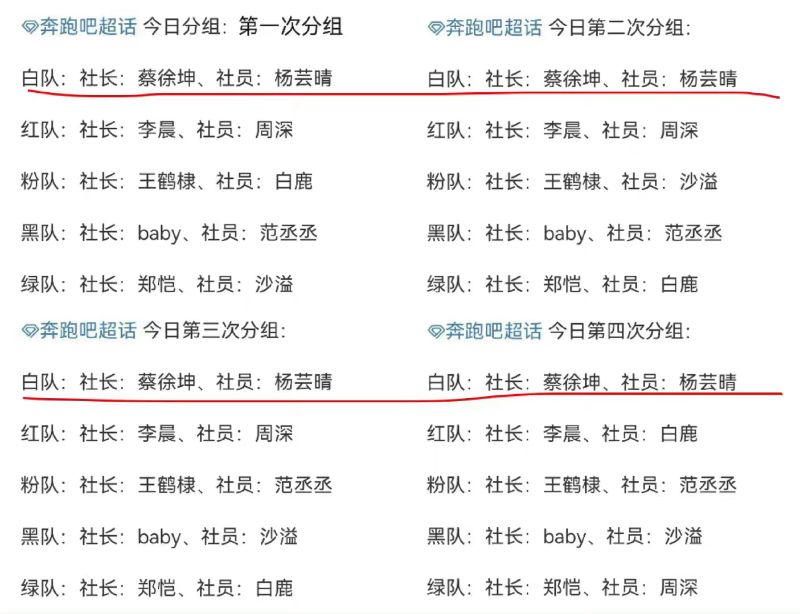 讓人更無語的是,這一集Sunnee四次分組都和蔡徐坤一組👇