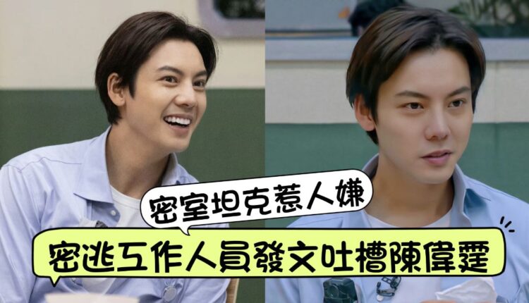 但,沒想到身為「密室坦克」,居然被密逃工作人員發文吐槽“沒綜藝感”?是噠,一位自稱是芒果工作人員的網友發文,表示辛辛苦苦做好的機關,被陳偉霆一把掀翻,沒有綜藝效果還破壞了道具👇