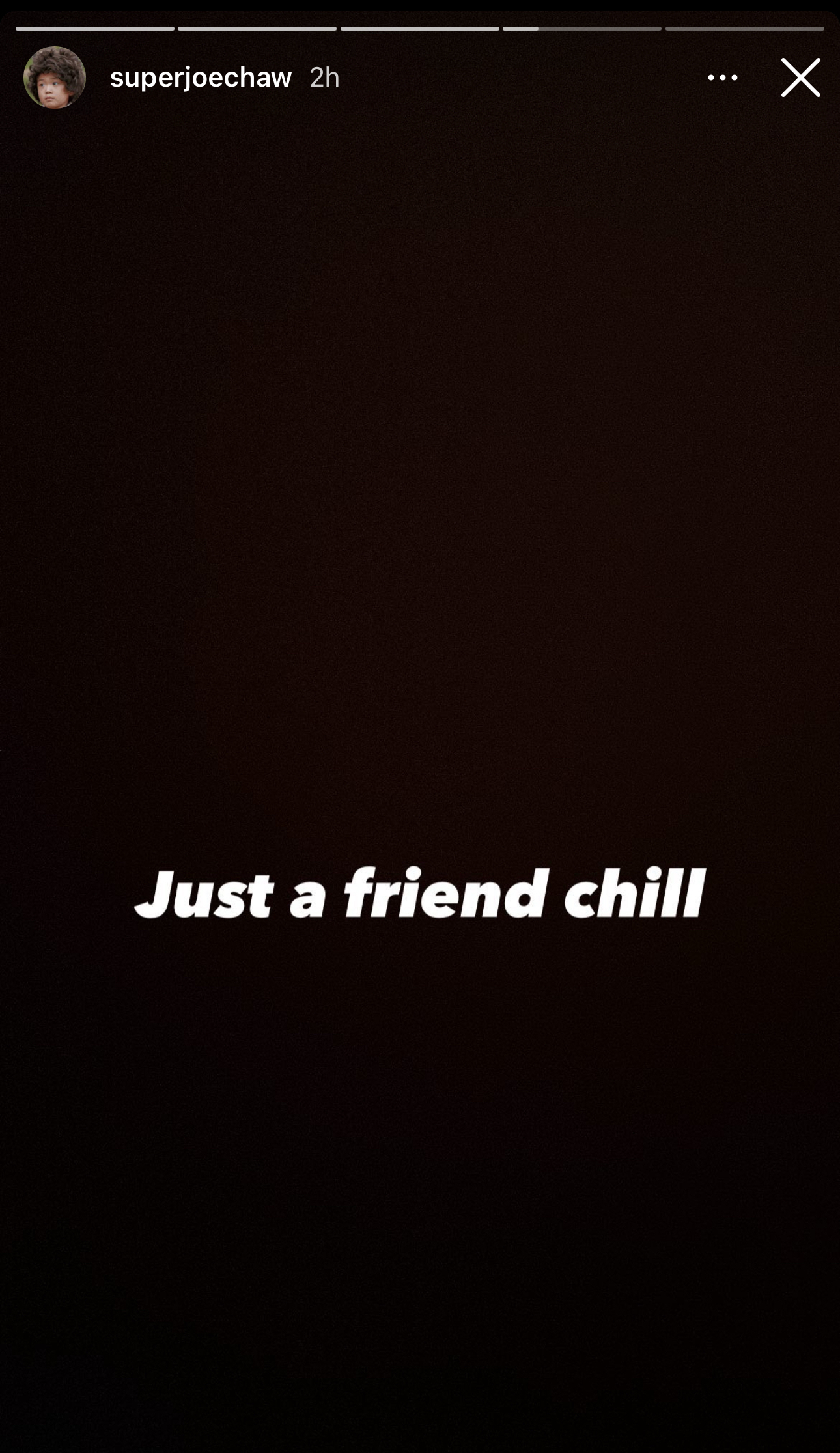 隨後,Joe也在ins限時動態發文,表示「只是朋友」