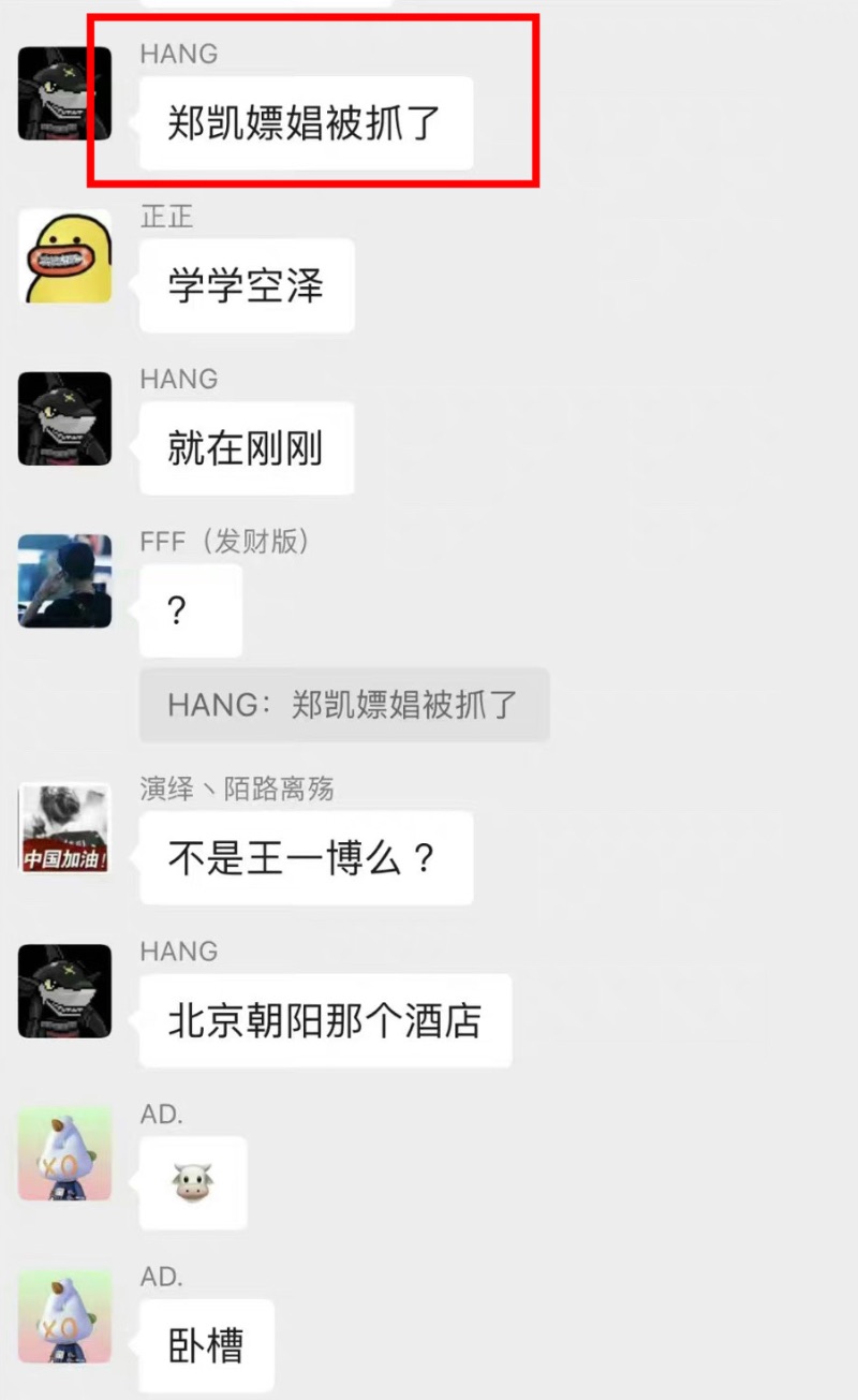 沒想到這個離譜瓜還沒結束,有網友公開聊天截圖,提到被捉的其實是鄭凱!嗯,鄭凱還是鄭愷?
