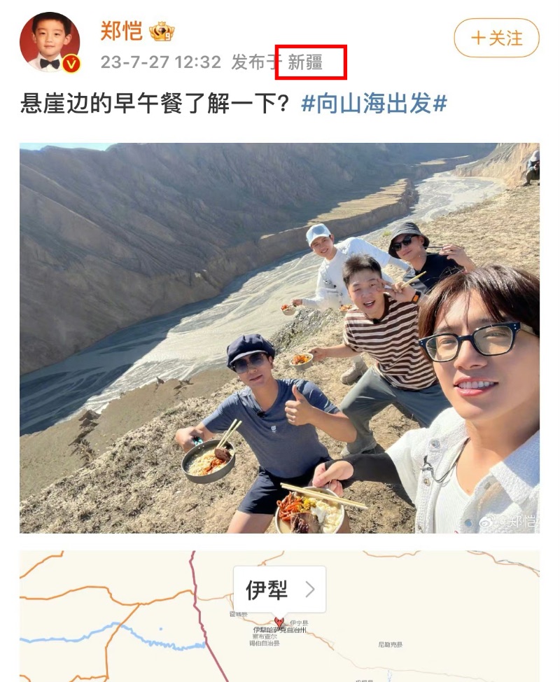 隨著上了熱搜,網友立刻去扒鄭愷近期活動,發現他雖然連續打卡新疆,但微博IP定位卻被關閉了。