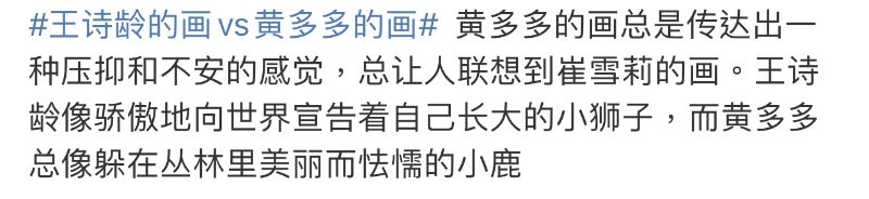 很顯然的,王詩齡和黃多多的畫風截然不同,一個寫實、一個抽象派,但評論區卻意外一面倒讚賞王詩齡👇