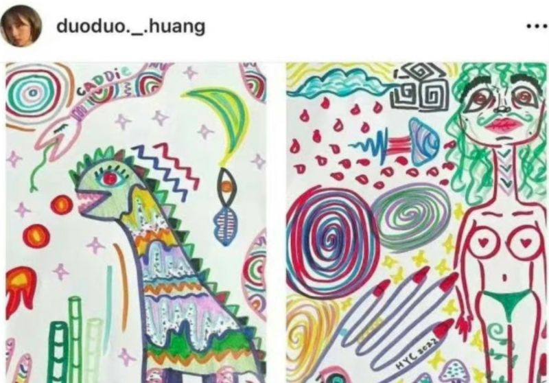 藝術細胞這麼優秀,自然也有涉獵畫畫!來看看黃多多曾在INS上分享的畫作👇