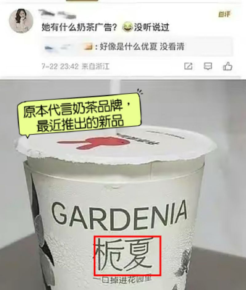 當時就有網友問她拍攝什麼廣告,原Po說好像是什麼「優夏」,而在7月28號也被證實,王楚然原本真的要官宣新的奶茶代言,而這個品牌新推出的新品,就叫做「枙夏」,和原Po之前說的對上了👇