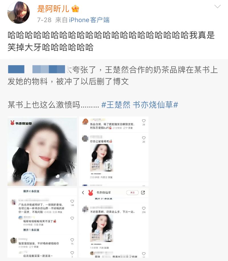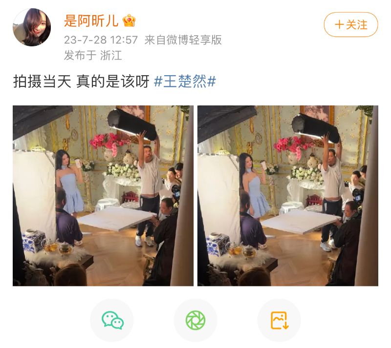 並在7月28日奶茶品牌預熱廣告圖發出之後,發出了拍攝廣告當天的圖,直接標註了王楚然,並表示:「真的是該呀!」