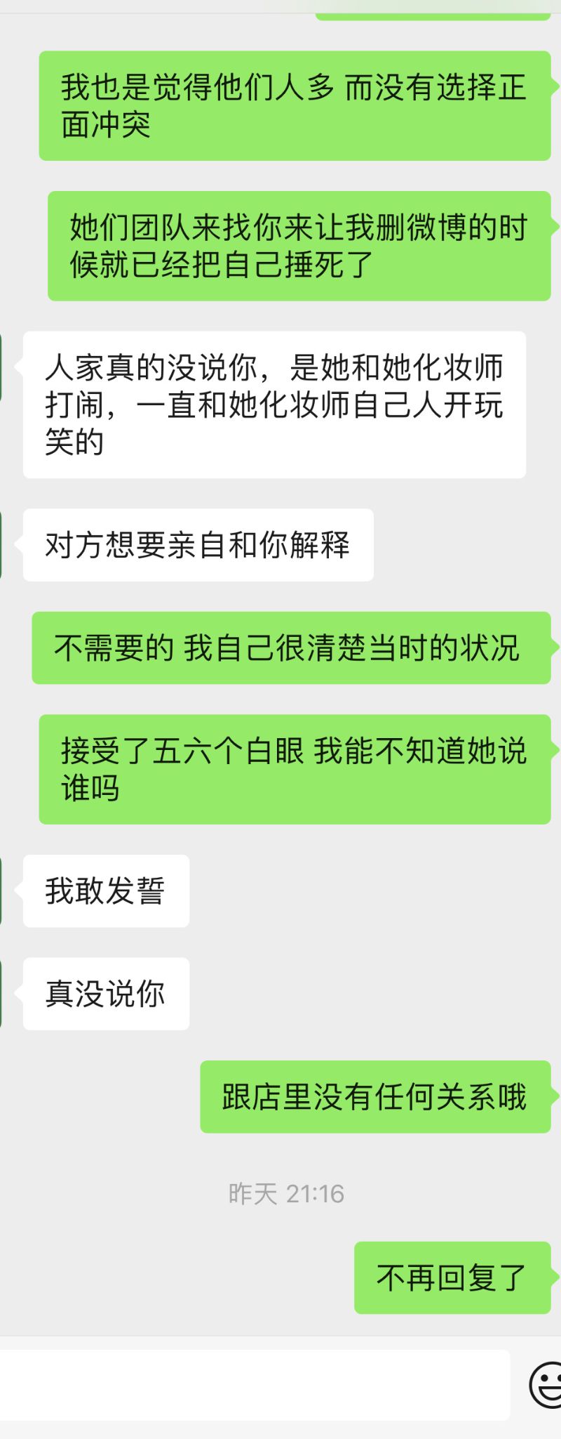 隨後再發文表示自己從沒關注過王楚然,是現場聽說了才知道她是演員,並強調現場有十幾個工作人員加店員,自己沒必要傻的跟她正面起衝突👇