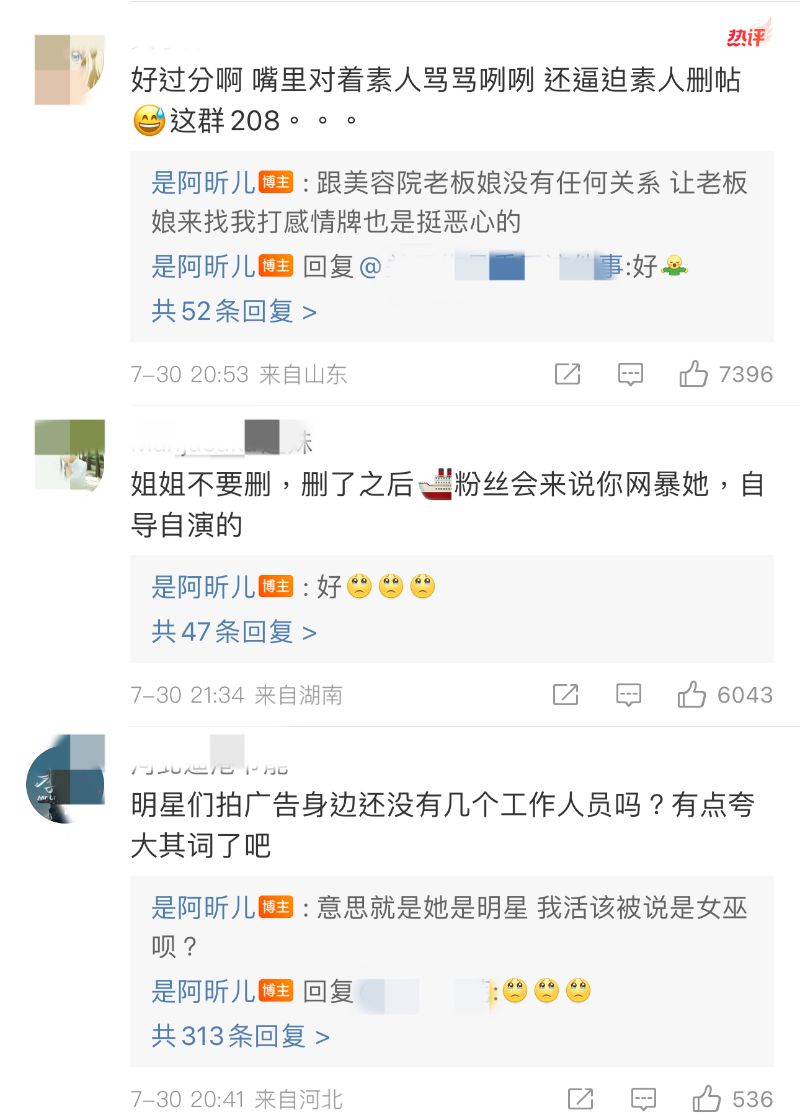 曬出了美容院院長要求自己刪博的聊天截圖👇