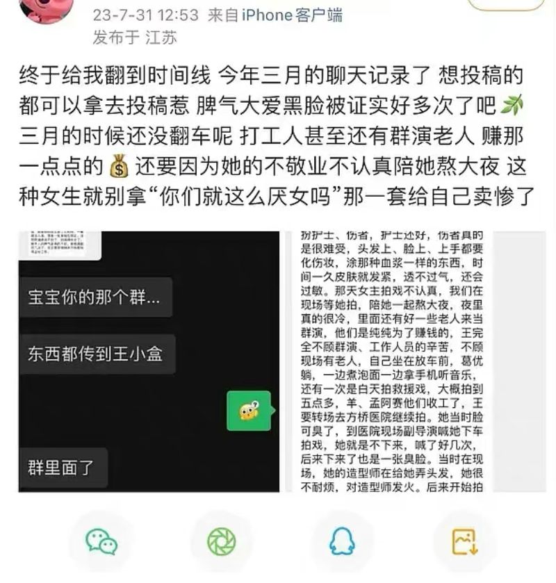 當時就有不少粉絲要求原Po曬證據,別只會寫小作文,原Po真的要錘給錘,發文曬證據解釋了整個事發過程,還公開了該照片的確是在7月22日拍攝的。當時原Po在橫店美容院做美容,剛好碰到了在拍攝的王楚然,結果被王楚然罵罵咧咧說:「好可怕,長得像女巫」!隨後自己發文吐槽之後,王楚然團隊聯繫店家要求原Po刪博,也沒有給出適當的理由👇