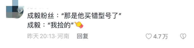 聽見正主這麼回應,粉絲紛紛表示被打臉,之前一直在闢謠,說是成毅買錯了型號,結果居然還真是在劇組撿了手機殼👇