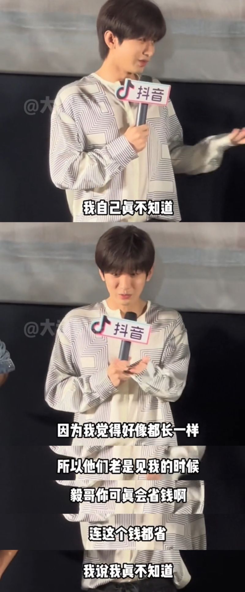 成毅表示自己對手機型號真的不知道,因為對他來說,看起來好像都一樣。所以自己經常被調侃:「毅哥,你可真會省錢啊!連這個錢都省,我說我真的不知道。」