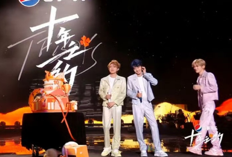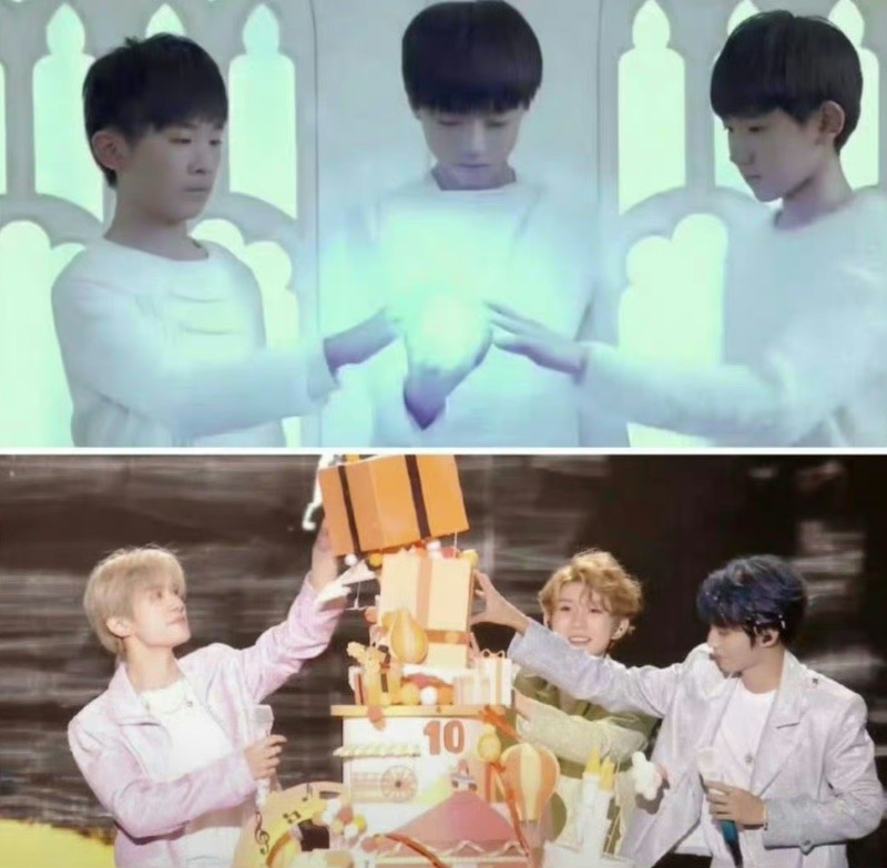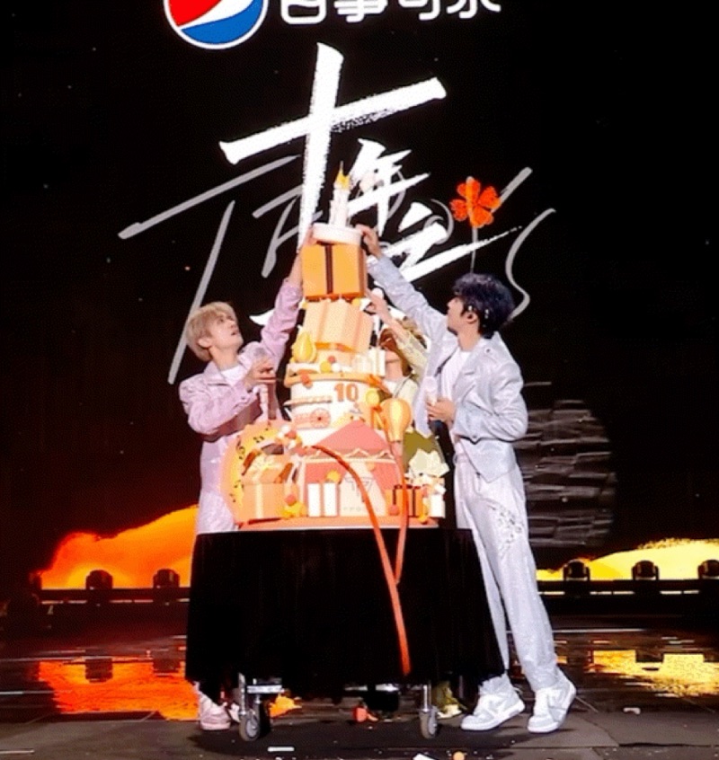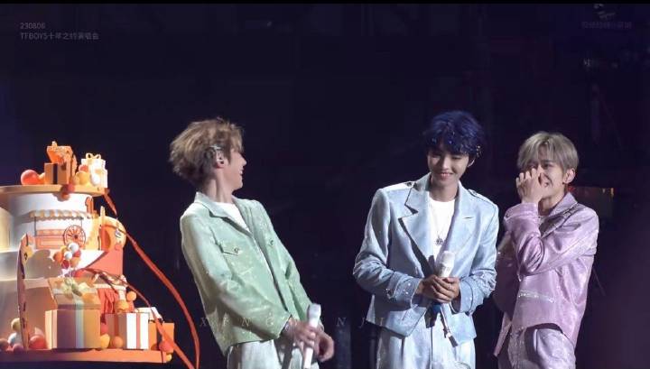 謝謝蛋糕塌了,也謝謝在場的帝國姐姐超有默契的喊:「時代峰峻倒閉了」🤣 十週年這一幕很抓馬,但絕對會成為寫入TFBOYS史冊的一幕!