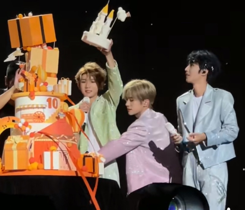 如果說在演唱會上公開《快本》的信是最爆哭時刻,那麼最抓馬的部分,絕對是⋯十週年蛋糕塌了🤣