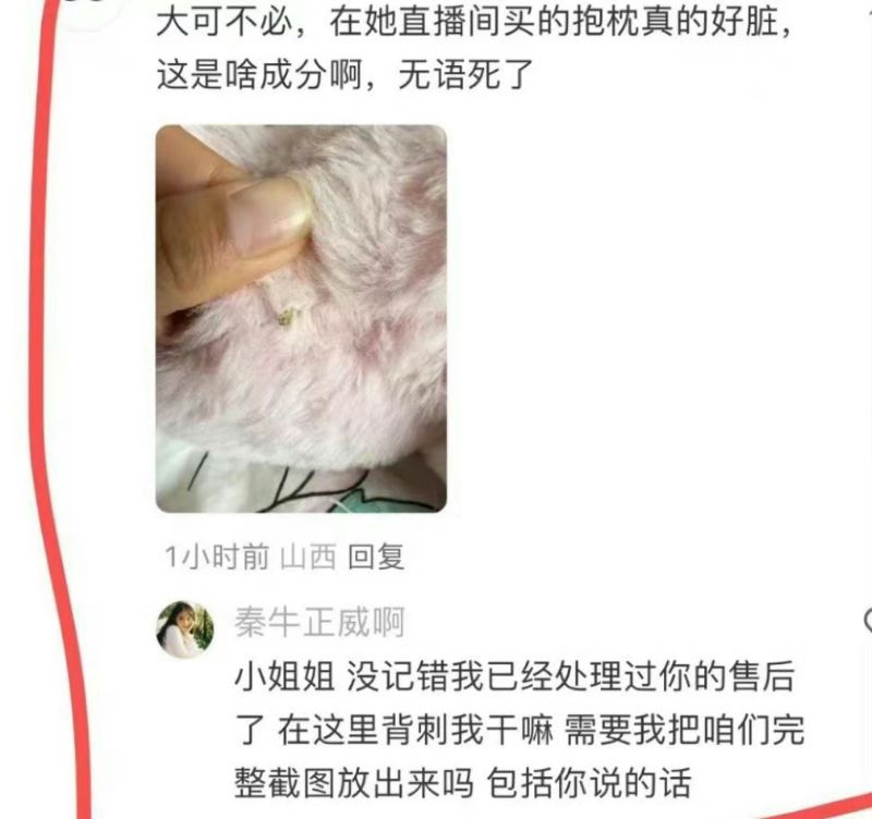 還有買家留了有關抱枕很骯髒的評價,並曬出了照片為證據,結果被牛姐回懟:「已經處理過售後了」(⊙o⊙)…所以處理了售後,就不能留真實評價了嗎?