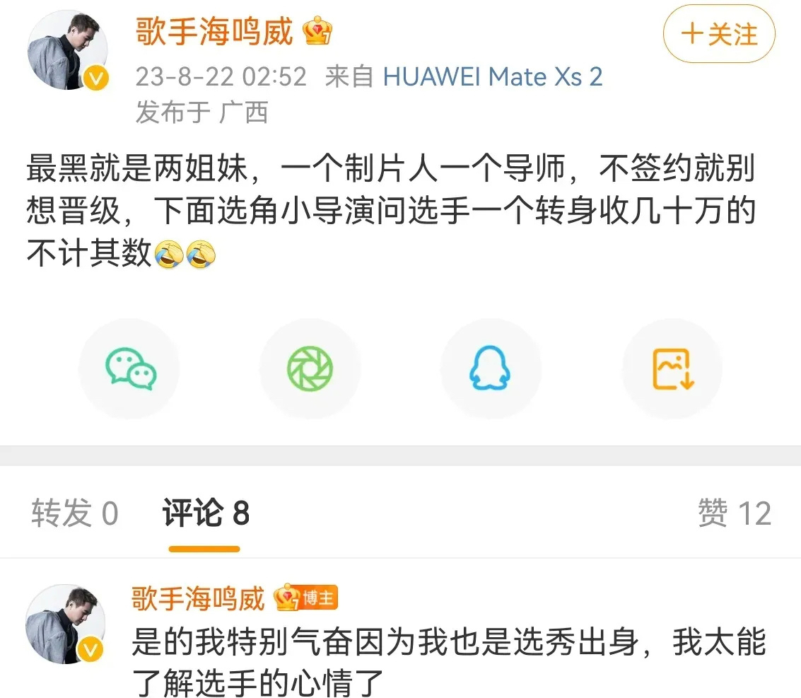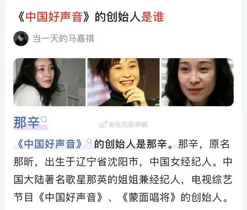 而海鳴威的發文,立刻讓人對號上了那英,因為眾所周知,那英連續出任了8季好聲音的導師,而其姐姐那辛,正是好聲音創辦人。