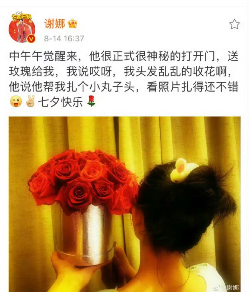 這麼多年來,七夕都是兩人灑狗糧的日子,要不就是謝娜曬張杰送的七夕玫瑰👇🏻
