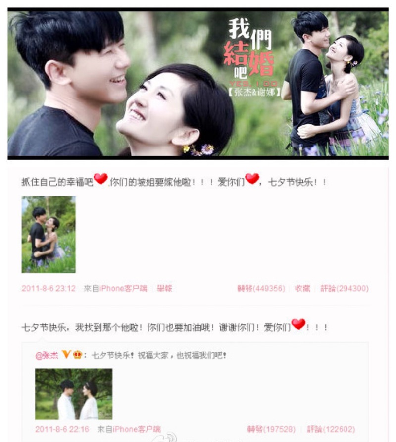 這裡科普一下,兩人是在2011年七夕官宣了婚訊👇🏻