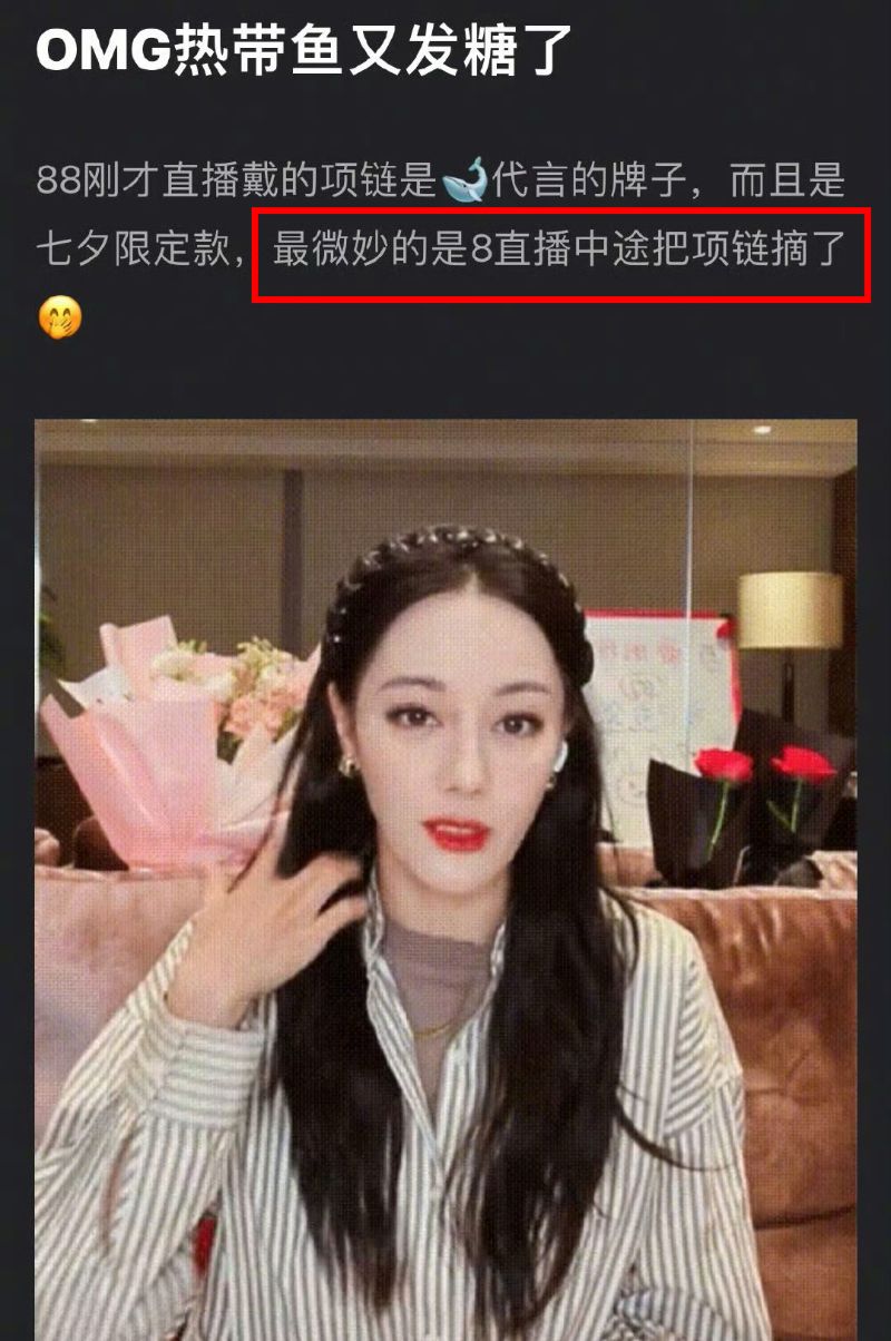而在熱巴最新的直播活動中,才開播就陸續有網友發帖,表示迪麗熱巴在曬恩愛,戴了黃景瑜代言的項鏈?
