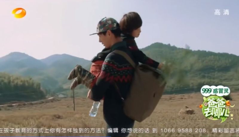 視頻中,張亮先是曬出了自己和天天在《爸爸去哪兒》中的經典動作,就是扛著兒子到處走👇