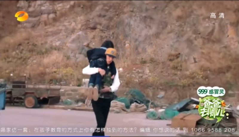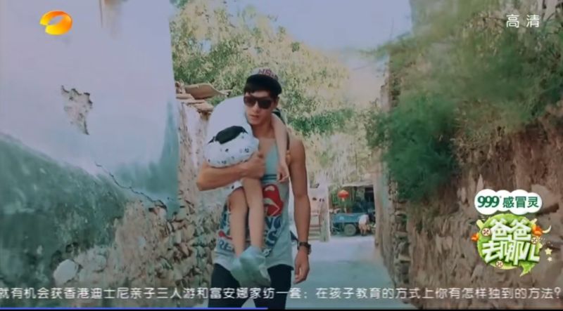 視頻中,張亮先是曬出了自己和天天在《爸爸去哪兒》中的經典動作,就是扛著兒子到處走👇