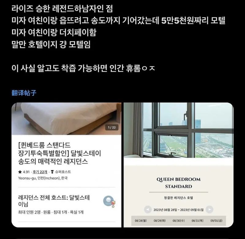 最抓馬的來啦~網友還爆料Seunghan和女友去的是松島酒店,甚至住宿費都是AA制!另外也被扒出,他在與女方戀愛期間找女方多次要錢,有時連交通費都找女方報銷。