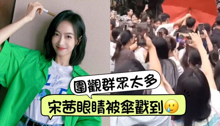 結果沒想到被擠在人群中的宋茜,意外被劇組工作人員的傘柄戳中,隔著熒幕都感覺到痛👇