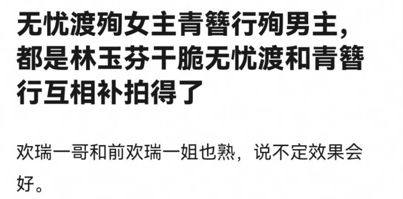 隨著《無憂渡》可能也殉了,就有網友建議不如讓這兩位前歡瑞一哥、一姐合作互拍就好,反正導演同一人!
