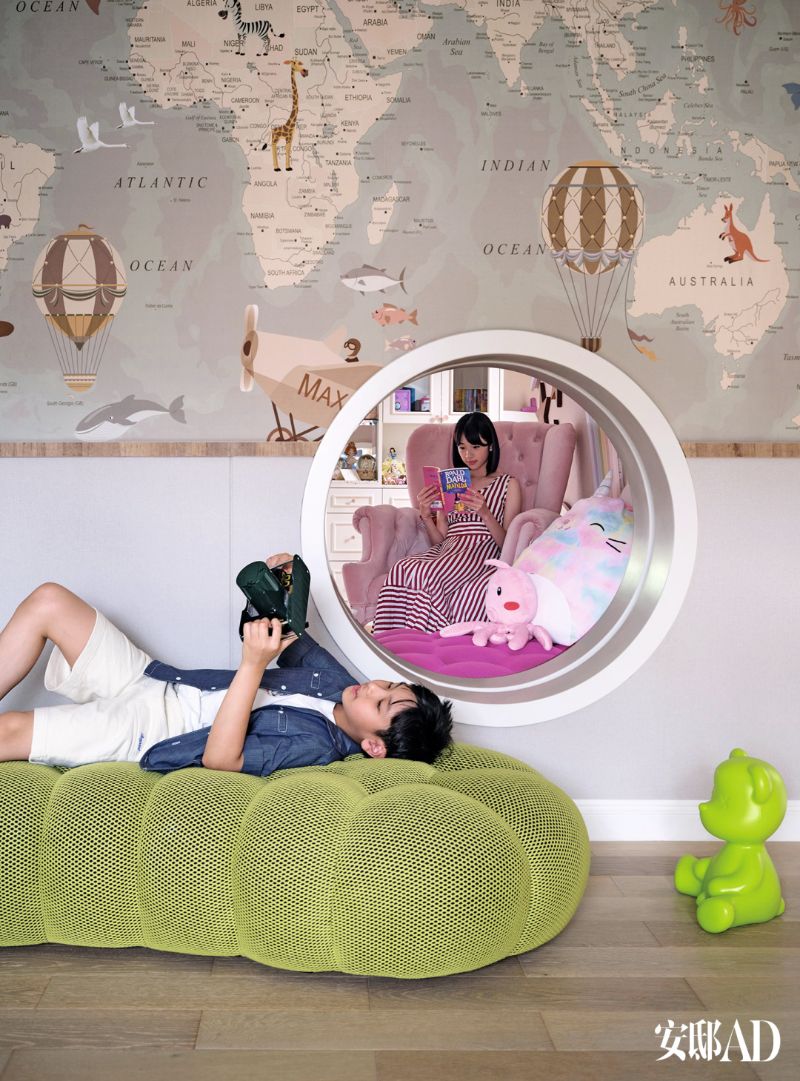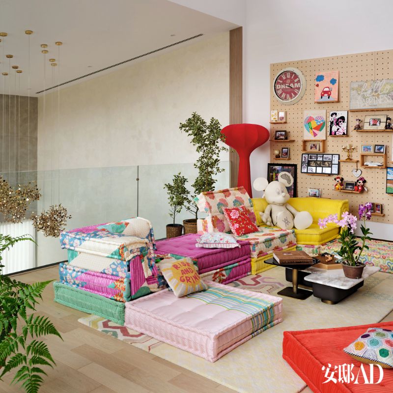 另外,還展示了家庭客廳,採用了類似迪斯尼一樣的繽紛色彩,營造舒服的感覺👇