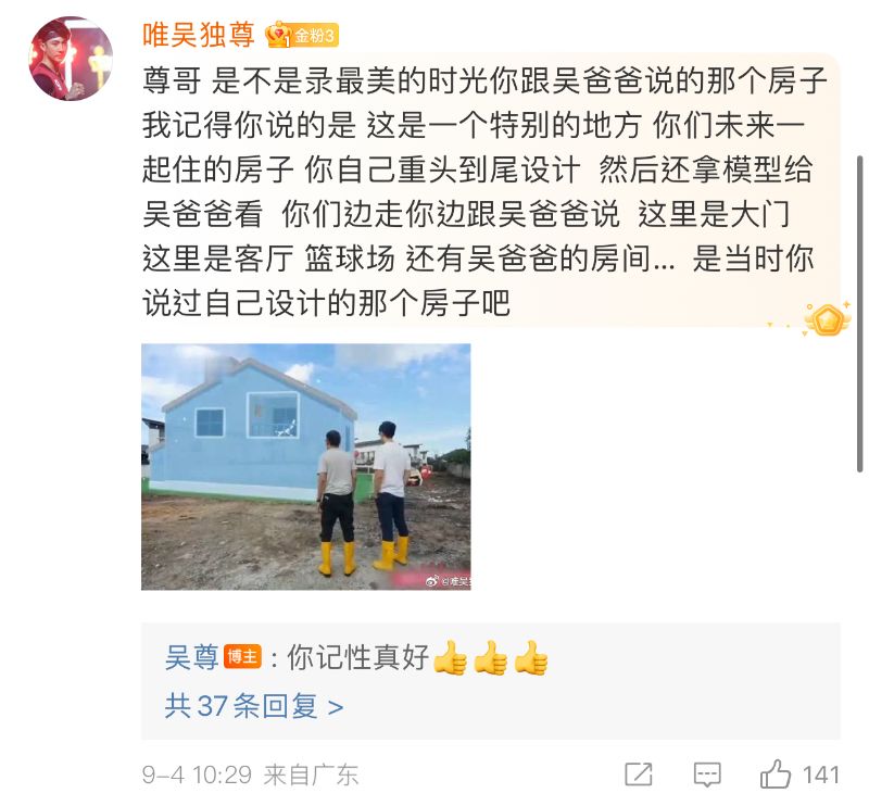 在吳尊分享了之後,鐵粉一眼就認出,吳尊曾在節目中帶爸爸來看這個地方,表示自己將會設計這個房子👇