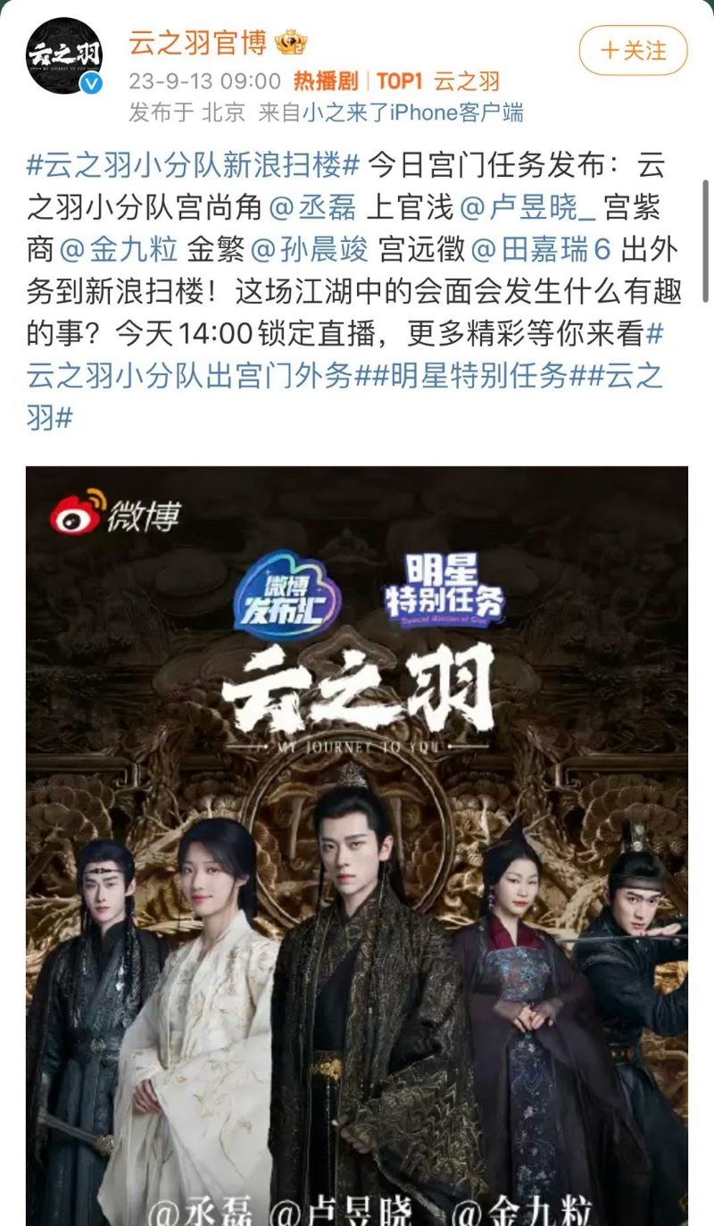 《雲之羽》劇組掃樓獨缺虞書欣張凌赫!男二女二CP登熱度榜第一!主演粉絲攻陷直播間留惡評!