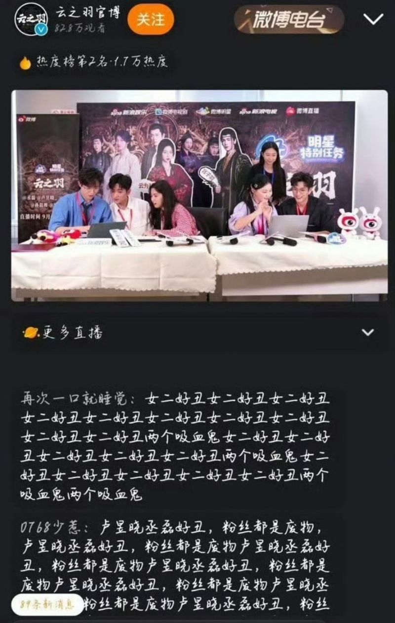 雖然但是,在直播間評論區,卻成了主演粉絲的戰場!有不少帶有主演頭像或名字的暱稱,在直播間評論區留下了辱罵的留言👇