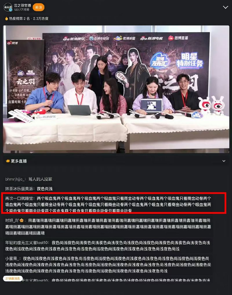 《雲之羽》劇組掃樓獨缺虞書欣張凌赫!男二女二CP登熱度榜第一!主演粉絲攻陷直播間留惡評!