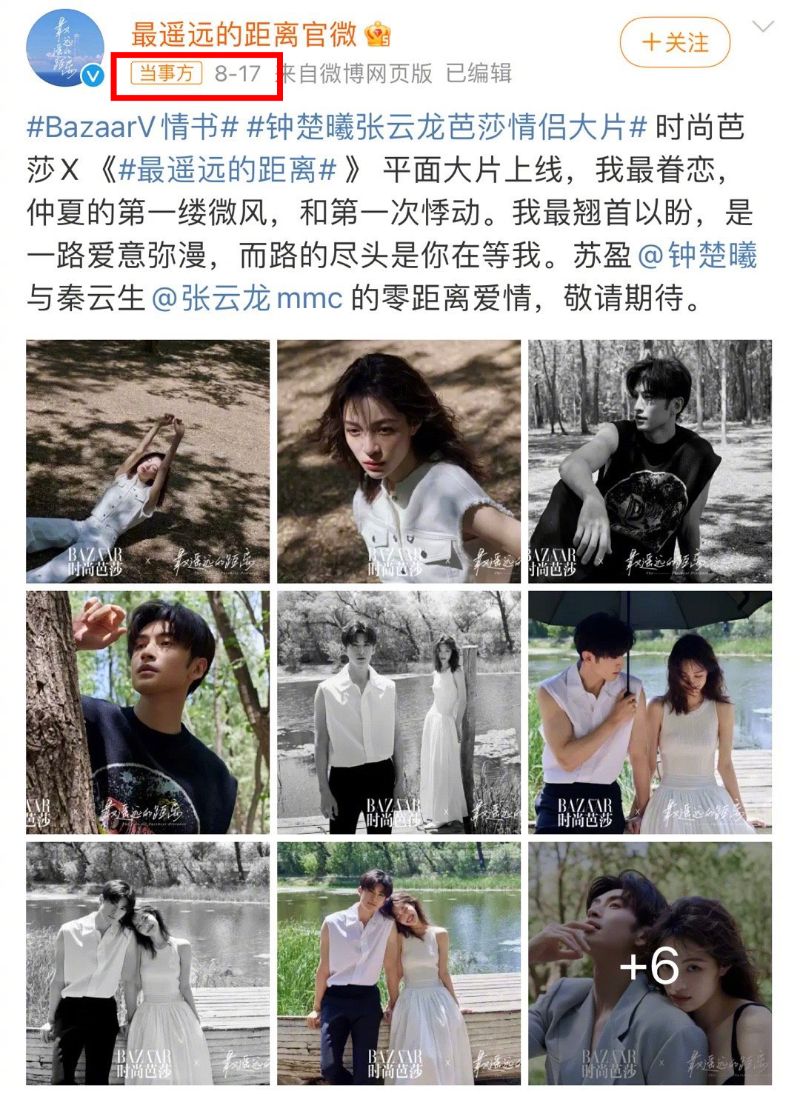 在8月17日,張雲龍和鐘楚曦還合體拍攝了芭莎情侶大片,當時不少人表示兩人氛圍感十足,果然還是真情侶好磕👇