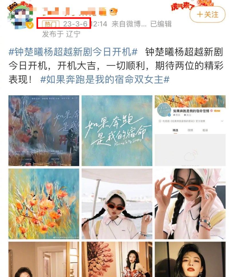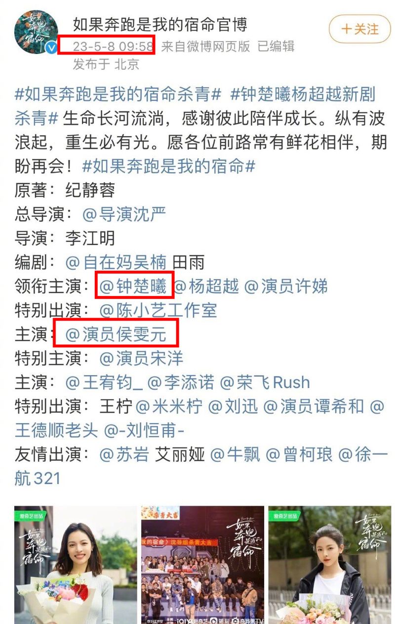 結果今年3月,鐘楚曦進組《如果奔跑是我的宿命》,和侯雯元合作👇