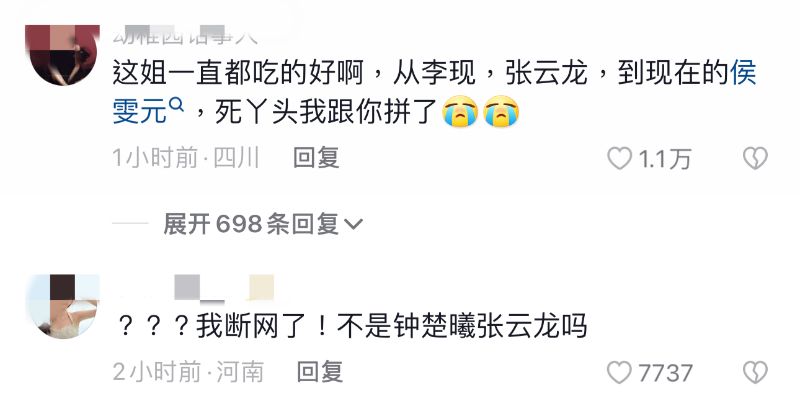 戀情傳出之後,立刻上了熱搜第一「鐘楚曦侯雯元牽手摟腰」,而緊追在後面的,就是「鐘楚曦張雲龍什麼時候分的」???