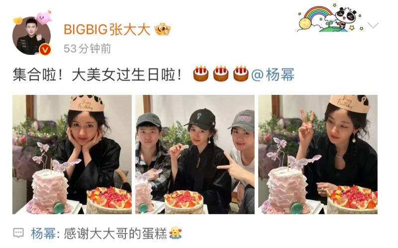 身為楊冪“閨蜜”的張大大和黃明昊,今年又一起出動為大冪冪慶生👇
