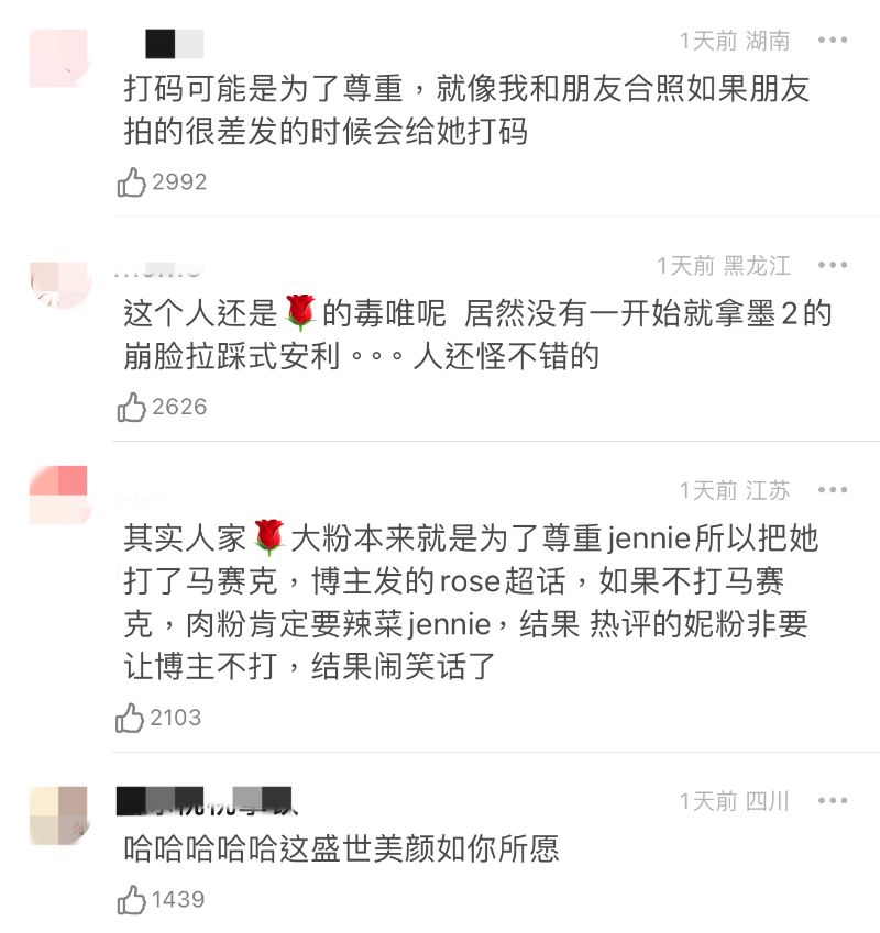 於是,不少JENNIE粉絲在評論區質問,為什麼要把JENNIE的臉打碼,抗議原Po不尊重JENNIE👇