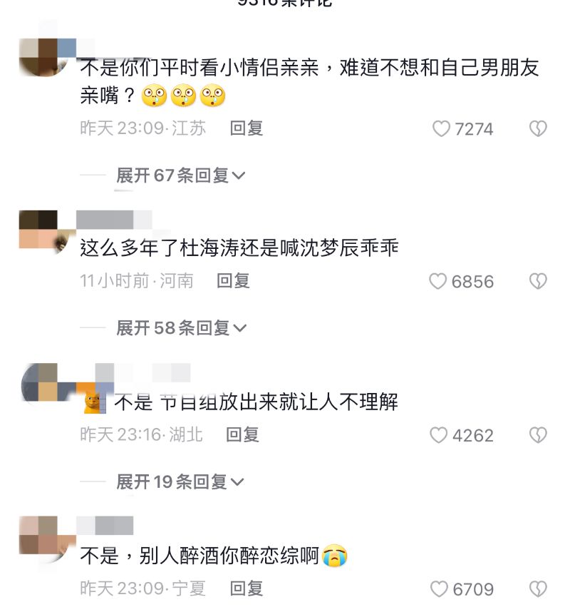 現場的大家都沒想到杜海濤會突然跑到觀衆席上親沈夢辰,因為節目錄制還沒結束,而且當著這麽多人接吻,多少是有些尴尬的,但杜海濤看見嘉賓接吻,上頭的瞬間啥都忘了,直接不管不顧的跑去親沈夢辰了,親完才後知後覺的向沈夢辰道歉,實在是又甜蜜,又搞笑。