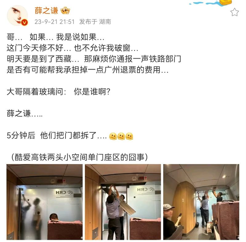沒想到知道被困的是薛之謙之後,高鐵職員果斷的…拆門了!
