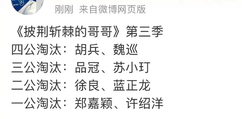 來吃瓜!!!是噠,都知道《披荊斬棘》第三季目前已經播出了二公舞台,而32位哥哥已經淘汰了4位。雖然節目才播到二公,實際上四公都已經錄製結束,而有關被淘汰的哥哥名單也傳出來了,到底截止4公,有哪些哥哥被淘汰了呢?這就先來吃瓜吧!
