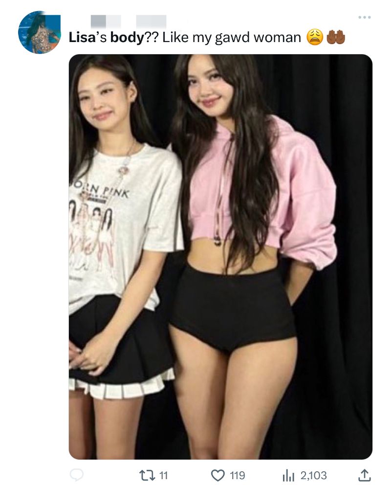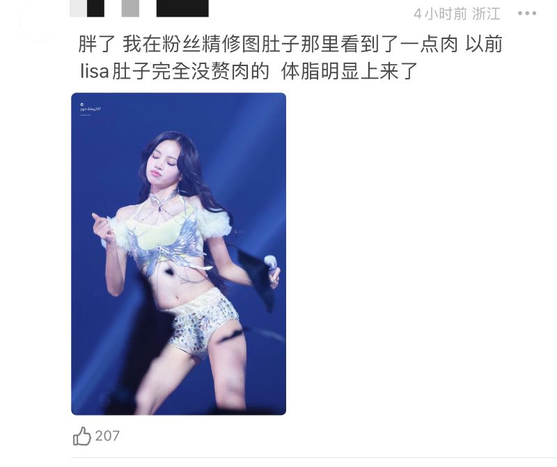 也來看看粉絲的澄清,表示實際上從2021年Solo開始,LISA就不再是纖細的身材👇
