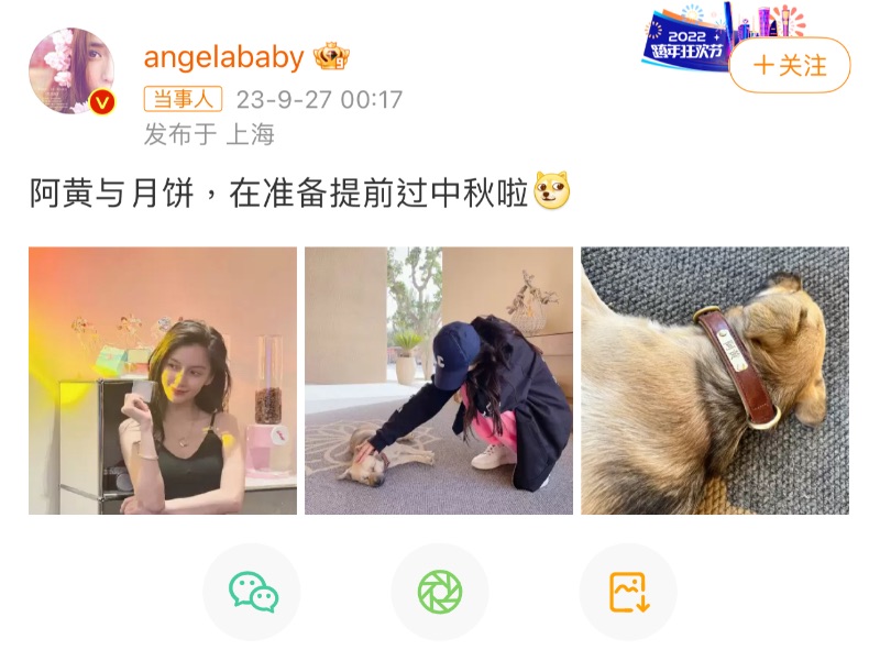 原來是因為楊穎曬出了一隻戴有「阿黃」項圈的狗狗,結果就有網友解讀成她在暗潮自己前夫黃曉明是「狗男人」👇🏻