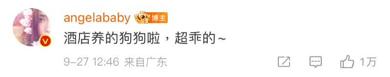 引起關注之後,楊穎特地在其微博評論區回應,表示這隻狗是酒店養的,直接闢謠。