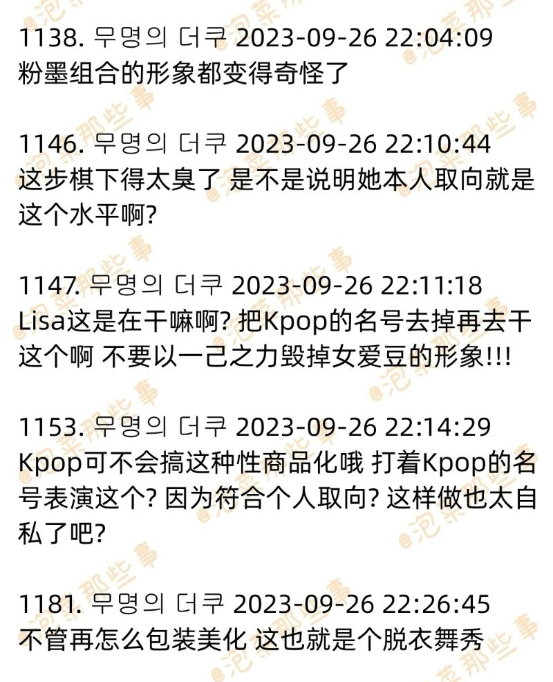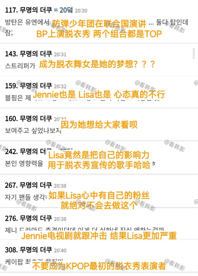 基本上,不少韓網友對LISA的決定表示受到了衝擊,也有不少喊話不要帶著KPOP的名號去表演,要就用「泰國歌手LISA」,甚至還有認為同樣是身為世界TOP團,防彈少年團是去聯合國演講,反而BLACKPINK成員去跳脫衣舞???無論如何,兩則討論高樓也迅速的被…刪除了!