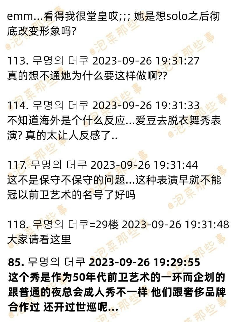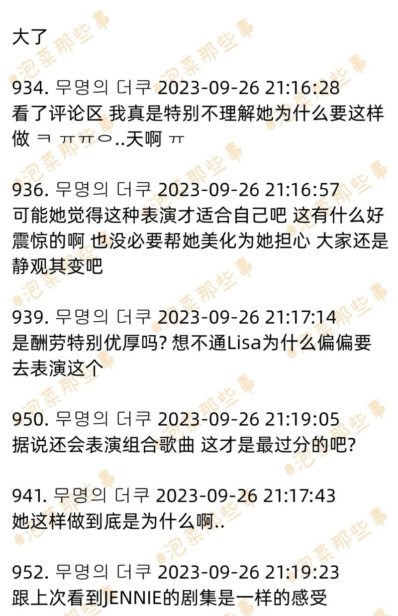 對比起在中國引起熱議,LISA將去瘋馬秀的消息,初期在韓網反而甚少討論,甚至有網友發現,一出現相關貼文就立刻被刪的程度。不過這兩天在韓網也終於有了破千樓熱帖,不少網友對於她要去跳瘋馬秀覺得…震驚!