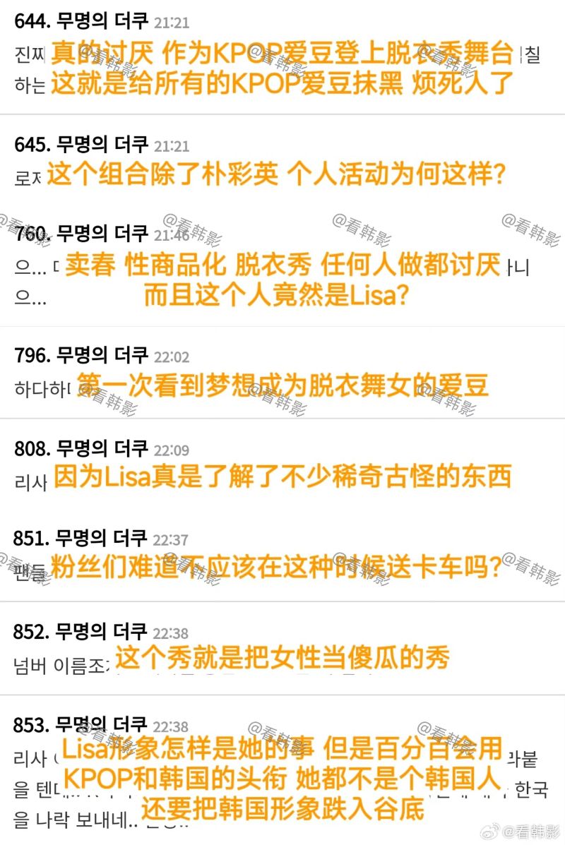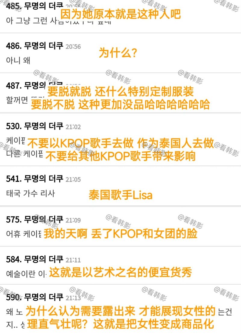 基本上,不少韓網友對LISA的決定表示受到了衝擊,也有不少喊話不要帶著KPOP的名號去表演,要就用「泰國歌手LISA」,甚至還有認為同樣是身為世界TOP團,防彈少年團是去聯合國演講,反而BLACKPINK成員去跳脫衣舞???無論如何,兩則討論高樓也迅速的被…刪除了!